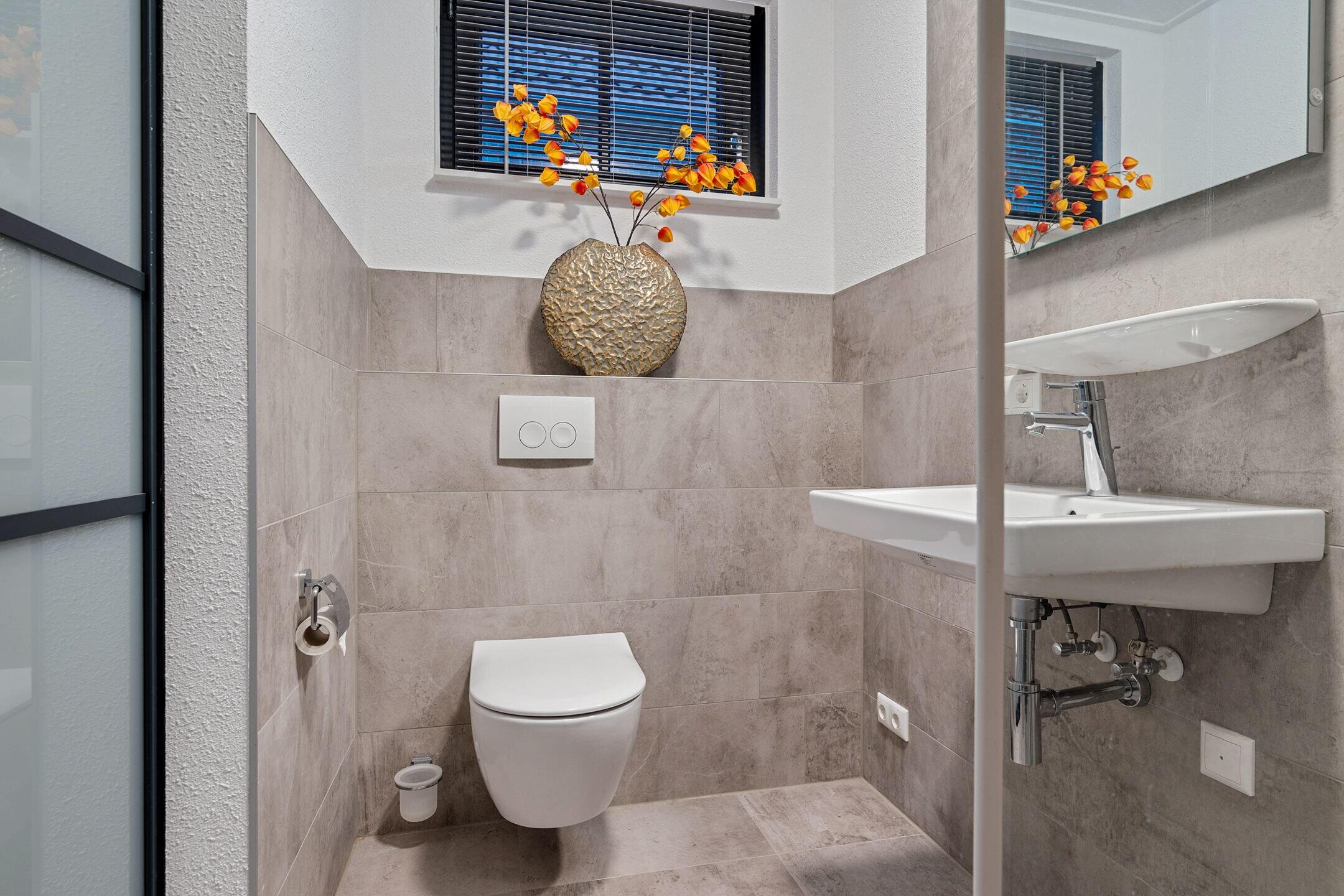 With seven spacious bedrooms, there is more than enough room for a large family, a home office, hobbies or guests. The house is also future-proof thanks to the ground-floor bedroom and bathroom—ideal for lifelong living. The second bathroom upstairs is stylish, bright and fully equipped with every comfort.