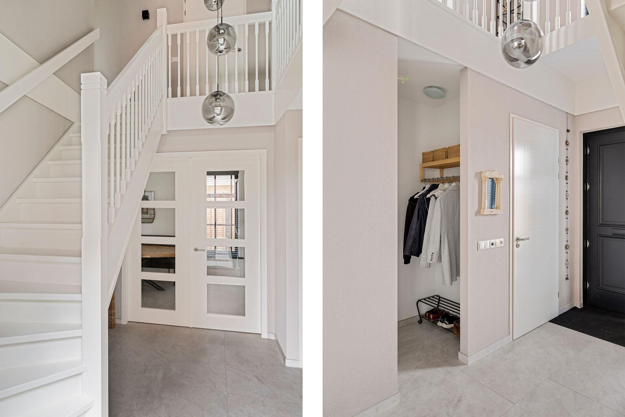 Deze geweldige vrijstaande woning met mooie ligging aan het bos in Nobelhorst om verliefd op te worden .Een lust voor de ogen. U komt gelijk binnen in een ruime hal met schitterend trappenhuis met vide.