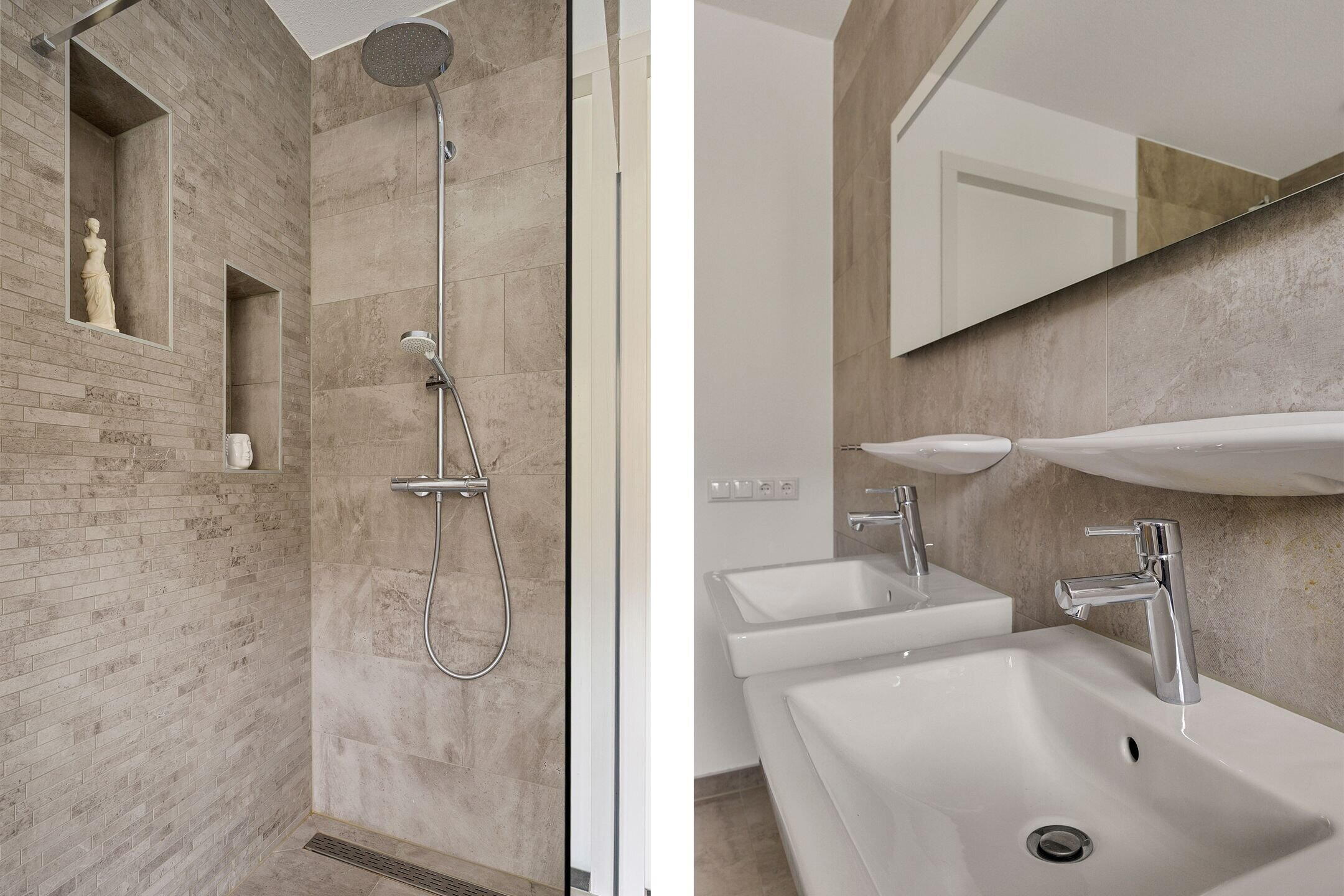 - 2 douches, toilet, wastafel, dubbele wastafel, en ligbad